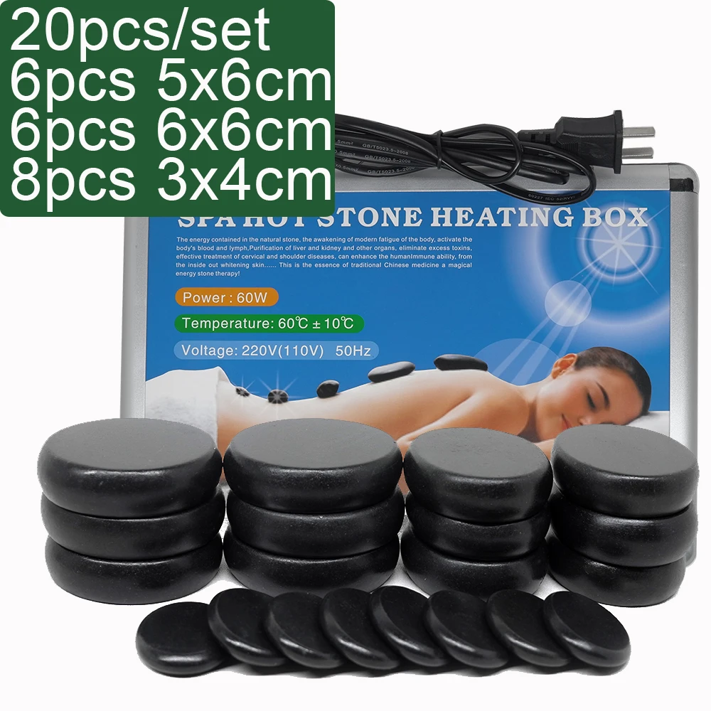 20pcs/set Hot Stone Massage Set Heater Box Relieve Stress Back Pain Health Care Acupressure Lava Basalt Stones for Healthcare