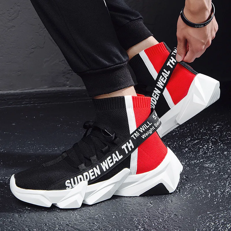 VSIOVRY 2019 Autumn Socks Sneakers Men Shoes High-Top Casual Shoes Flyknit Breathable Walking Sneak