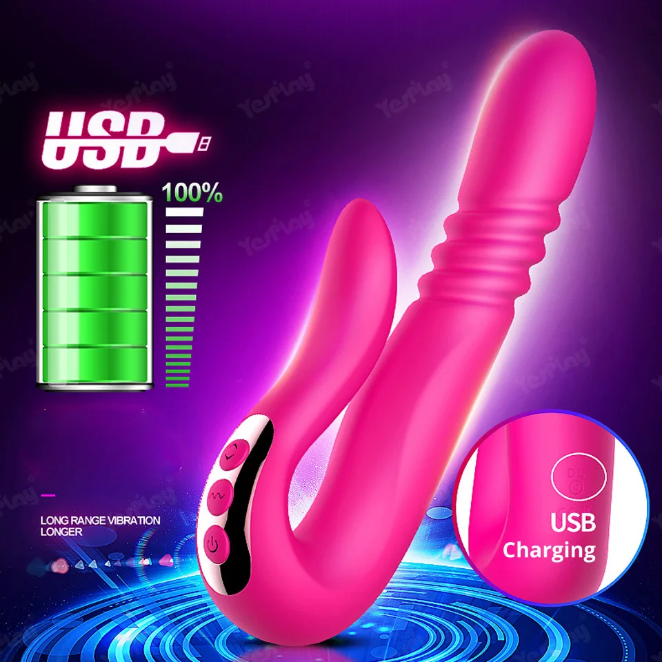 Rabbit Vibrator Telescopic Vibration Built-in ball Rotation Heating G spot Dildo Vibrator Female Masturbation Sex Toys for woman